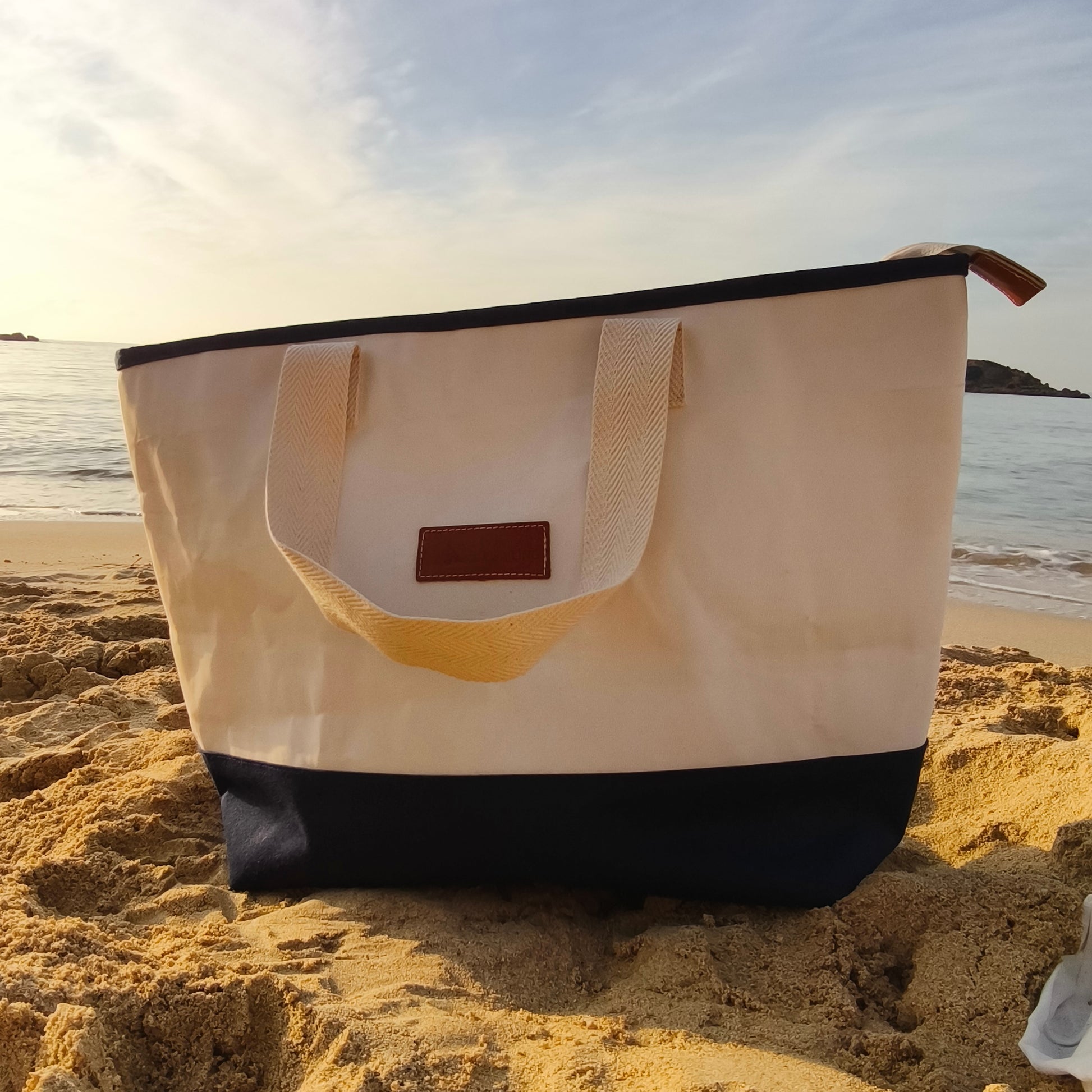 Bolso artesanal elaborado con Dacron de alta resistencia y lonas recuperadas, impermeables y duraderas, perfecto para acompañarte en cualquier ocasión manteniendo un estilo clásico.